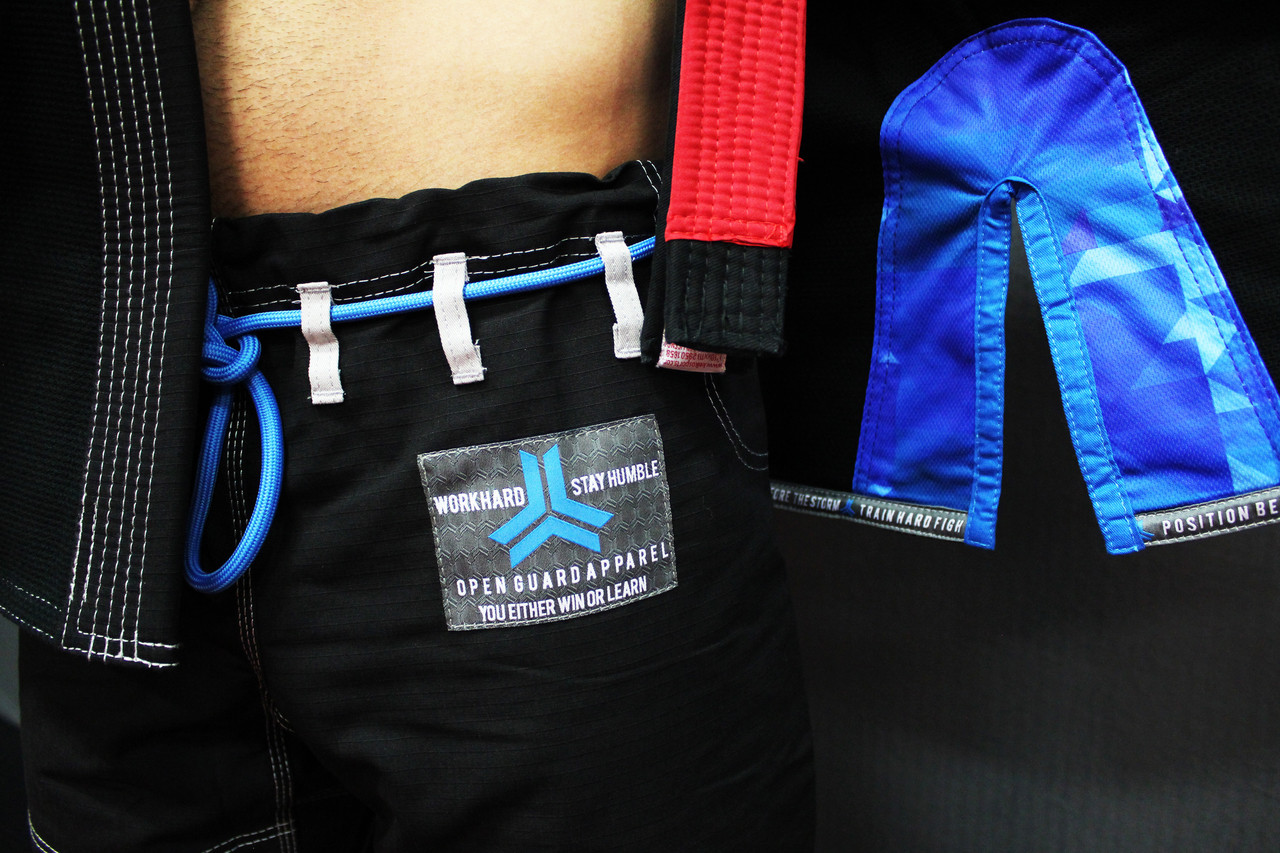 Open Guard Apparel's New Light Blizzard Gi is sleek & light, great for training and in the competition scene. This is IBJJF-approved and has aqua blue accents. The Blizzard Light Gi will be with you through the tough rolls and makes a great travel companion since it only weighs 3.5 lbs! Open Guard Apparel offers three colors: the classic black, white, and royal blue.